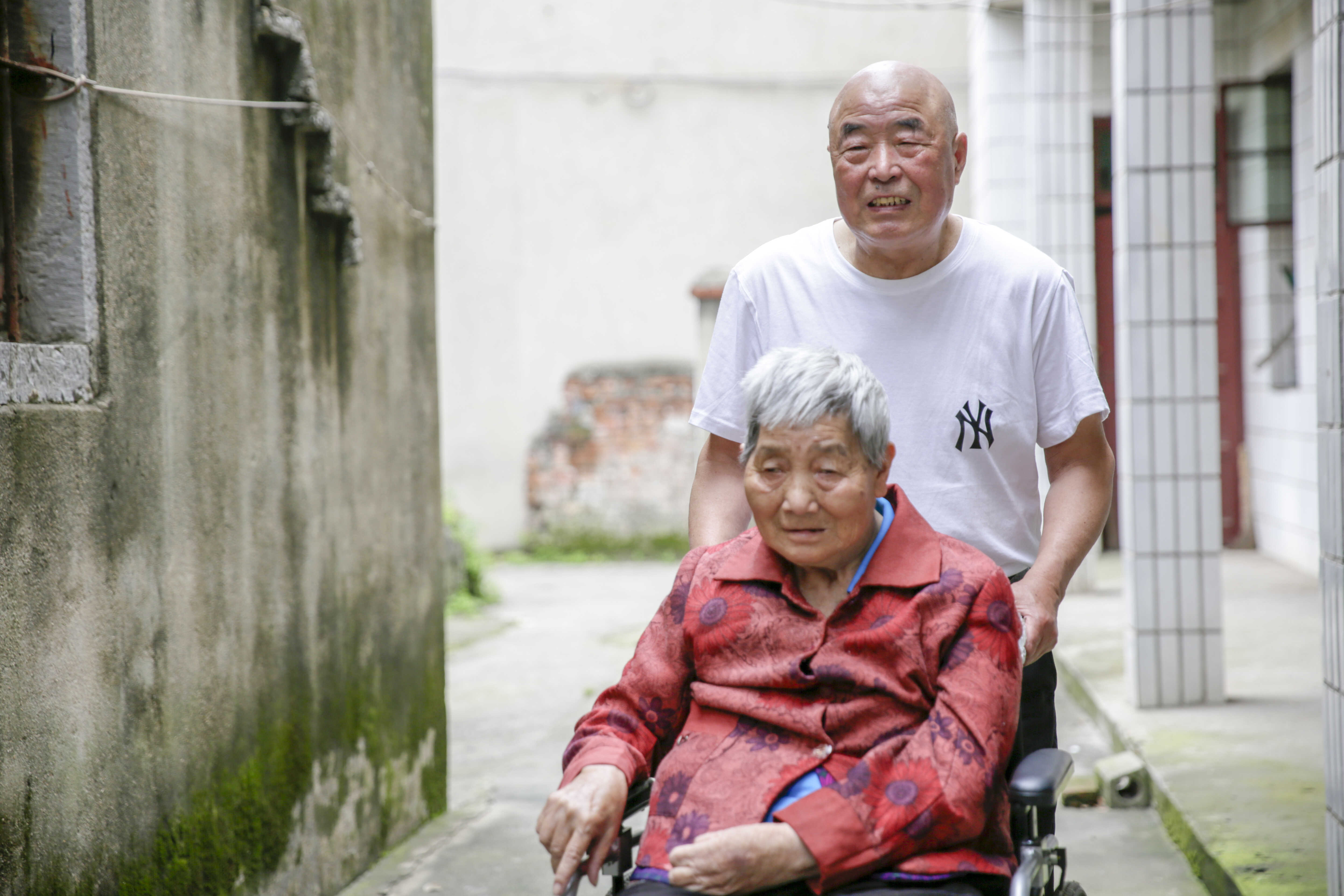 在他的精心照顧下,黃相英的身體一天天恢復(fù)了,精神狀態(tài)也不錯(cuò)。汪賢商深知妻子喜歡出門活動(dòng),唯恐她在家憋悶不開心,只要不下大雨或下雪,汪賢商堅(jiān)持推著輪椅帶老伴黃相英出門,問她想吃什么就帶她去買什么。一起買菜做飯、出門透氣、和鄰居聊天,這一照顧就是十幾年,輪椅也用壞了十幾輛。