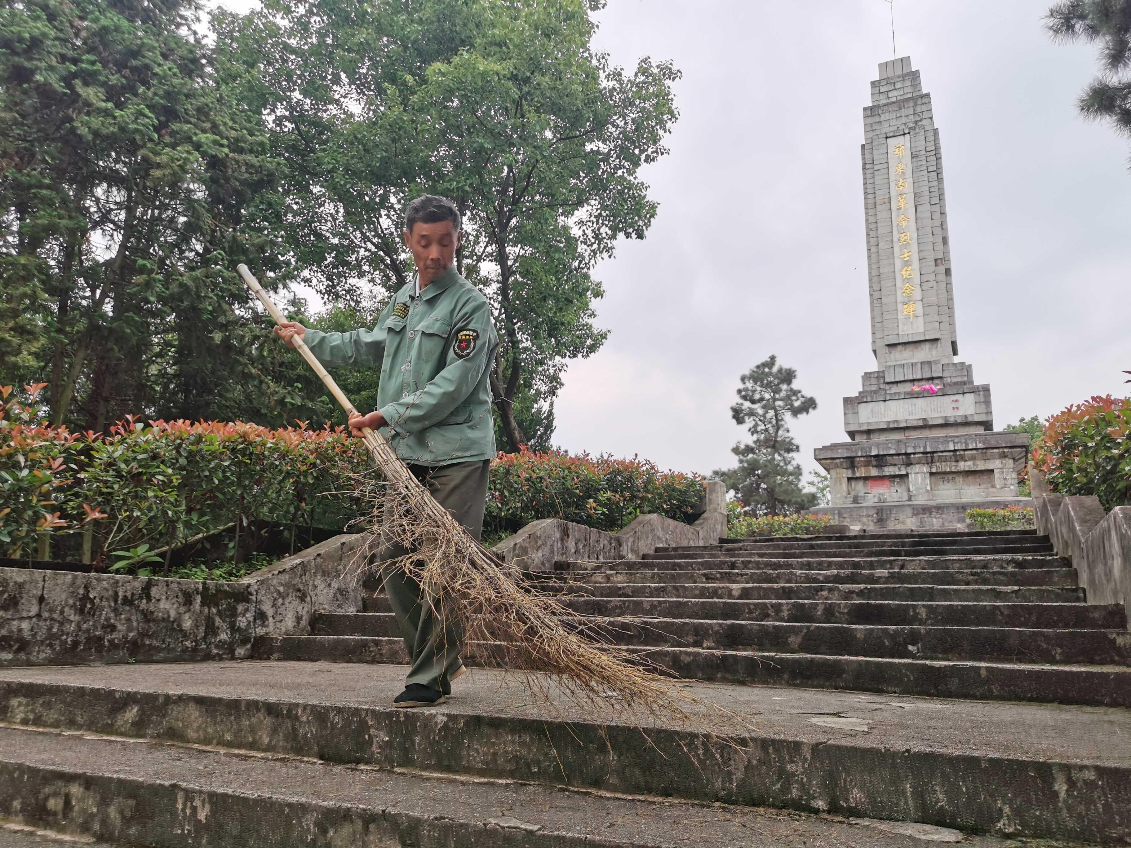 “我要守護好你們?!笔嬖趧t在紀(jì)念碑前莊嚴(yán)承諾。自那以后,舒在則平日出門打工,周末上山打掃陵園。2010年后,舒在則辭了工,從此,無論寒冬臘月還是盛夏酷暑,他幾乎每天都會騎著電動車上山,掃地、割草、栽花、種樹、施肥,有時一忙就是一整天。