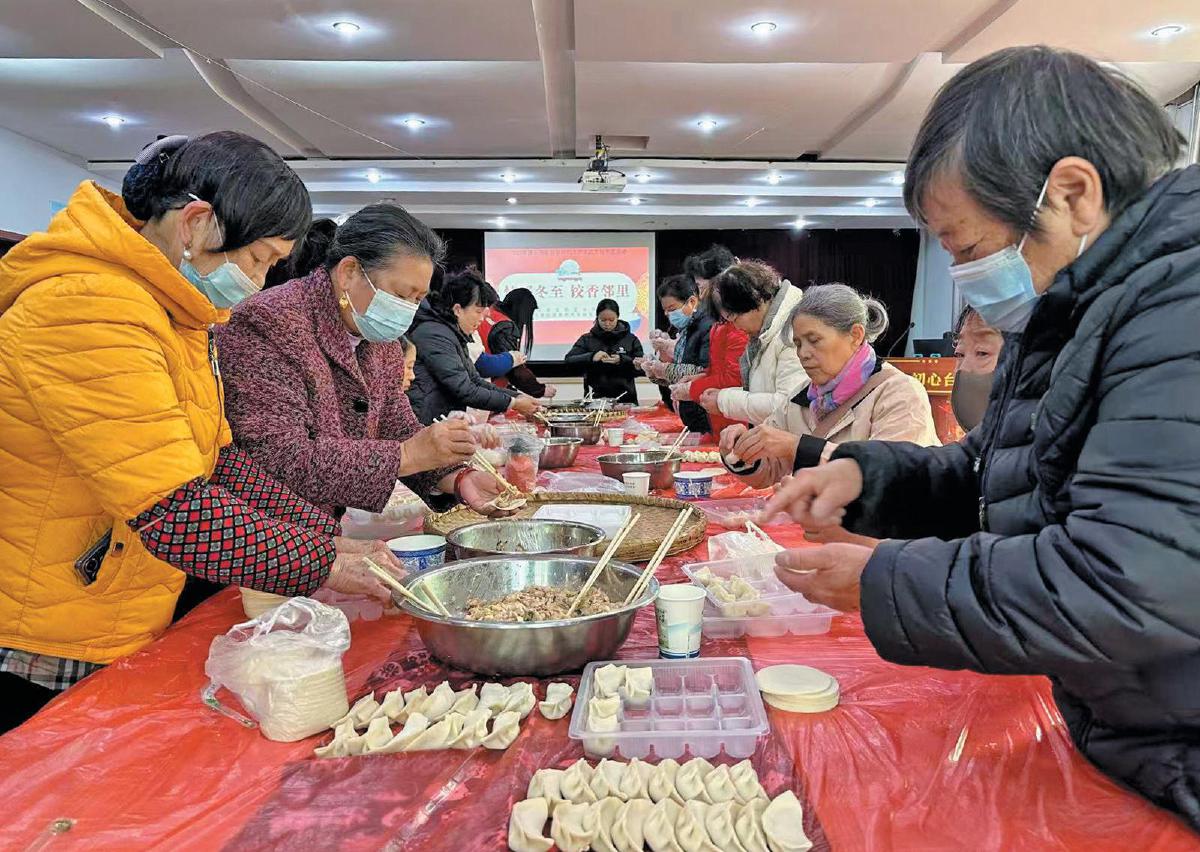 12月21日,迎來了二十四節(jié)氣中的第二十二個節(jié)氣,也是冬季的第四個節(jié)氣——冬至。圖為19日,黃石港工會驛站聯(lián)合黃石港社區(qū)新時代文明實踐站,組織轄區(qū)單位職工、居民開展迎冬至包餃子活動,讓社區(qū)大家庭的溫暖直抵人心。