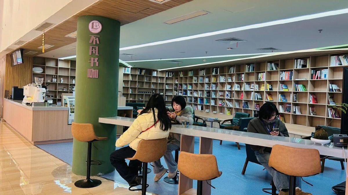 逛累了,不妨來(lái)到書(shū)香與咖啡香交織的“不凡書(shū)咖”。訪客可在此點(diǎn)一杯咖啡,嘗一塊黃石港餅,享受獨(dú)處的閱讀時(shí)光。而在二樓,還設(shè)有專門的音樂(lè)療愈區(qū),由專業(yè)老師開(kāi)展禪坐冥想指導(dǎo)與音樂(lè)理療服務(wù),為市民提供一處讓身心徹底沉靜下來(lái)的角落。