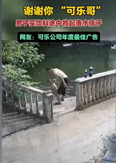 10日以來,?黃石開發(fā)區(qū)·鐵山區(qū)太子鎮(zhèn)上董灣居民董名仁救起一名落水兒童的視頻在網(wǎng)絡(luò)上熱傳,網(wǎng)友們紛紛留言點贊,親切地稱其為“可樂哥”。