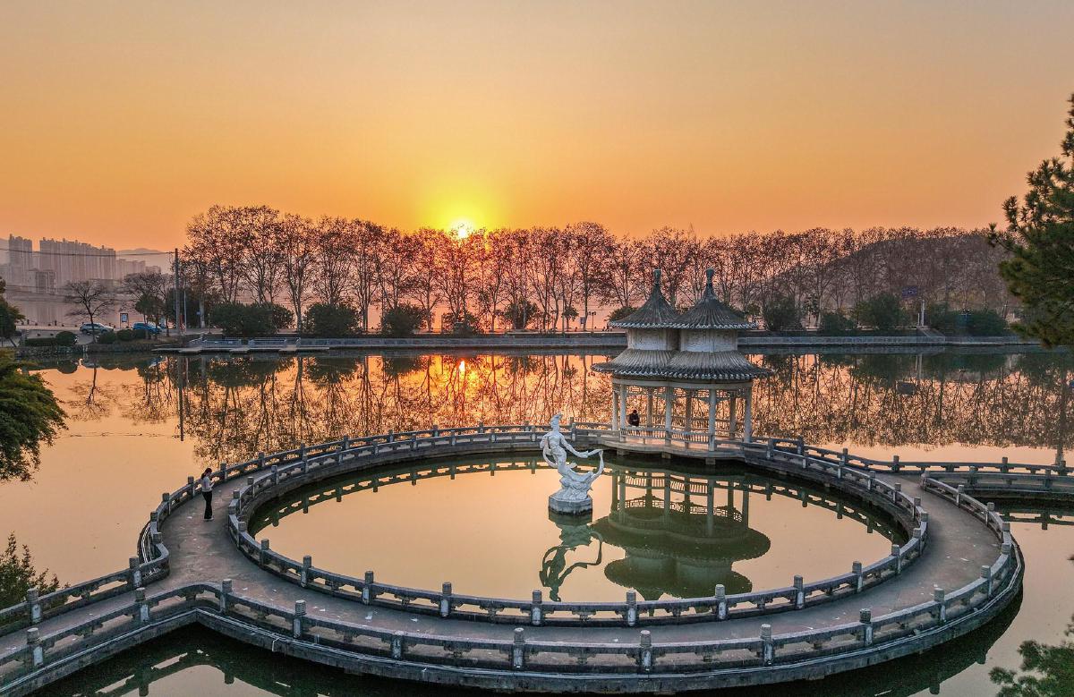 14日,落日余暉灑在澄月島上,一幅暖冬畫卷徐徐展開。黃石融媒記者 吳山 攝