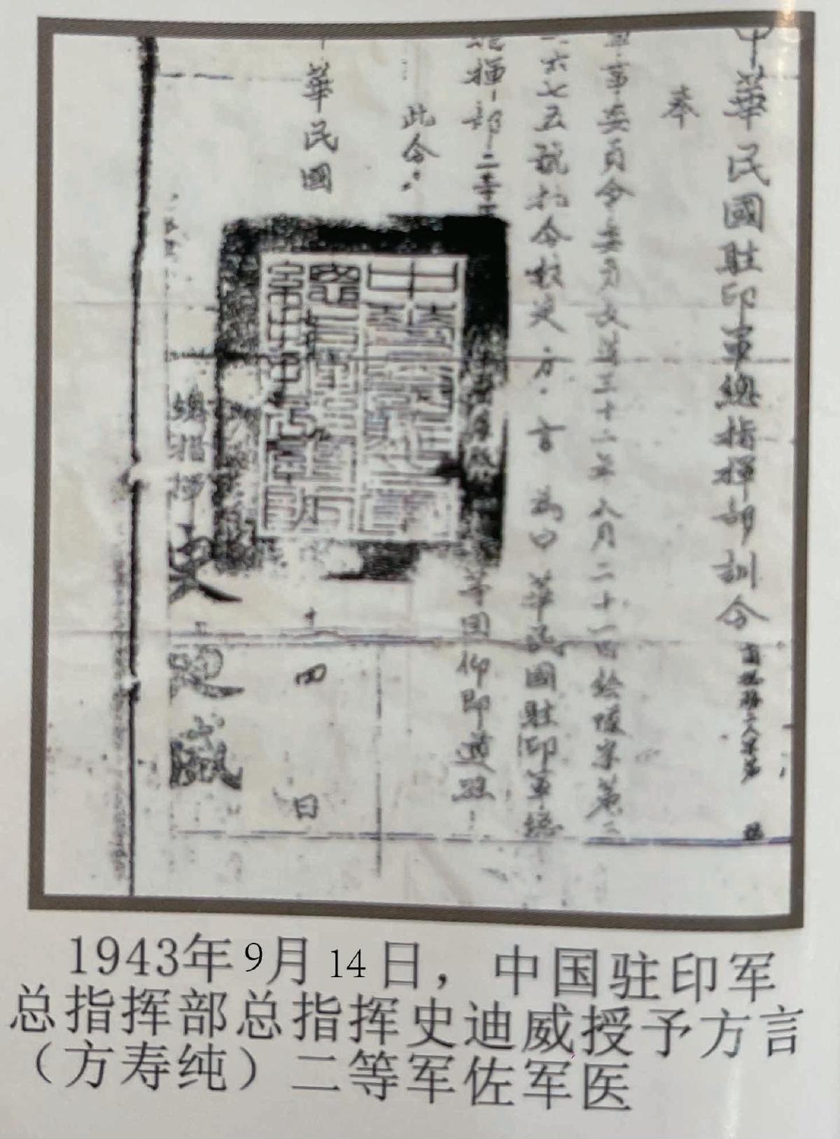 間諜案告破,數(shù)名間諜被處決。方壽純的敏銳與忠誠(chéng),為她贏得了一項(xiàng)殊榮:1943年9月14日,史迪威將軍親自為她授予“二等軍佐軍醫(yī)”軍銜(相當(dāng)于中尉)。方壽純生前一直珍藏著這份《駐印軍總指揮部訓(xùn)令》,視其為一生的榮耀。