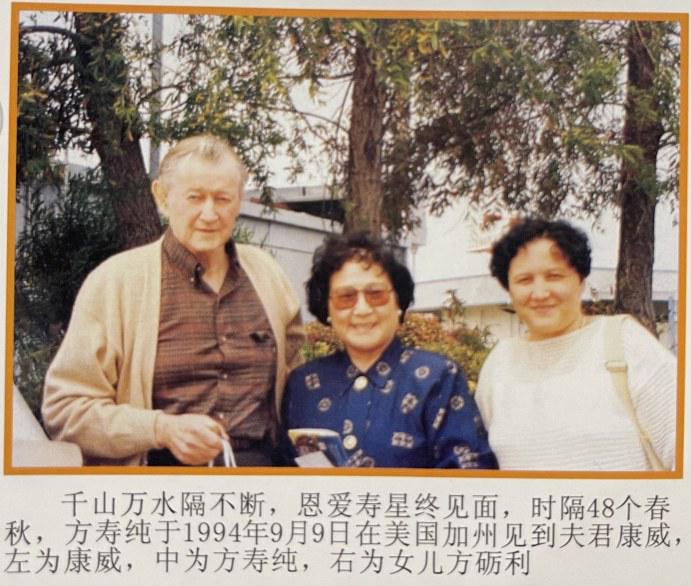 1994年9月,在女兒的陪伴下,方壽純前往加州見康威——這是兩人闊別48年后的第一次見面,也是最后一次。當(dāng)被問及相見情景,方壽純平靜地說(shuō):“沒說(shuō)什么,不知從何說(shuō)起?!眱扇斯策M(jìn)晚餐,默默相伴4小時(shí)。2年后,康威病逝。
