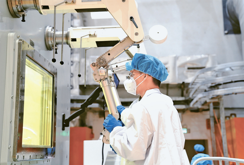 2025年,位于甘肅民勤的2兆瓦液態(tài)燃料釷基熔鹽實驗堆已成功實現(xiàn)國際首次釷鈾核燃料轉(zhuǎn)換,成為目前國際上唯一運行且實現(xiàn)釷燃料入堆的熔鹽堆,為我國未來規(guī)模化開發(fā)利用釷資源、發(fā)展第四代先進(jìn)核能系統(tǒng)提供核心技術(shù)支撐與可行方案。圖為2025年10月24日,在中國科學(xué)院上海應(yīng)用物理研究所武威園區(qū),科研人員在2兆瓦液態(tài)燃料釷基熔鹽實驗堆加料—取樣熱室工作。 新華社記者 張建松/攝